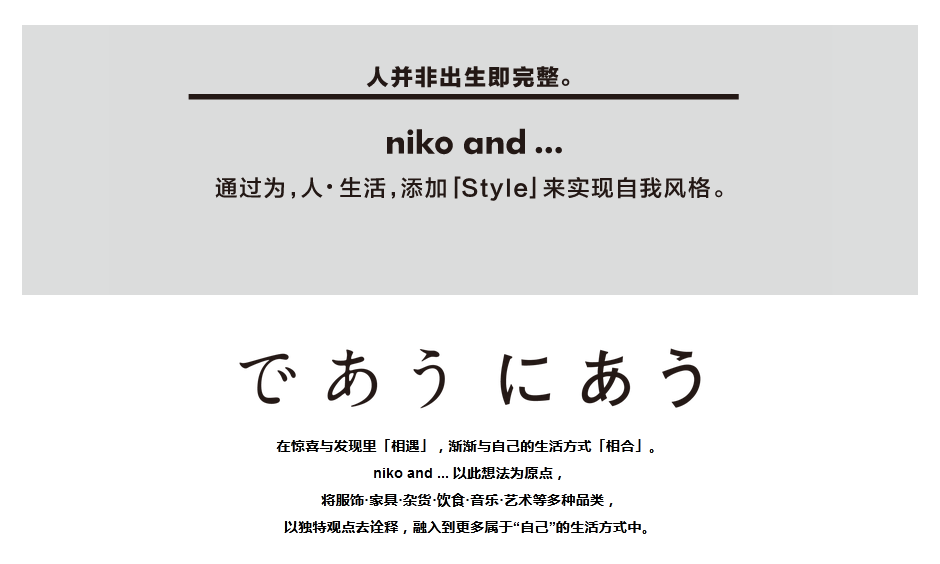 F您比较推崇什么样的管理风格?为什么?您本人也是这样的管理风格吗?A我的管理风格是快乐工作,正像niko and…给到的生活方式——快乐工作,快乐生活。如果我们自己都没有一个非常好的lifestyle,又怎么会有办法引领风潮呢?F对于想在零售业市场部门工作的年轻人,您想对他们说些什么?A希望年轻人对消费市场有更多的信心,也希望他们能对生活有更多的欲望。欲望有了,你才会有向前的动力,这样一来才能促进梦想达成。F您觉得生活与工作之间,哪些方面能形成彼此互补?A我是一个没有明确工作与生活区分的人,我觉得来到中国,适应当地的生活,对我来说,已经是我的工作。比如说,周六出去玩,去咖啡店坐坐,去城市的户外走走,体验不同的生活方式,这些感受都会对我接下来的工作有帮助,毕竟niko and…是一个生活方式品牌,生活也是工作的一部分。关于niko and...niko and ... 是日本时尚及生活方式零售集团、日本第二大本土服饰集团Adastria旗下品牌之一,是经营服饰、杂货、家具、饮食等多个品类的风格编集品牌。niko and ...中国官网:https://nikoand.cn/