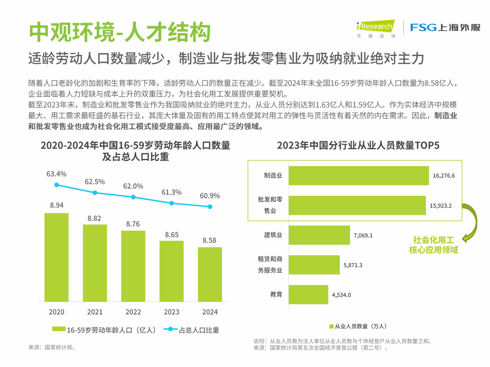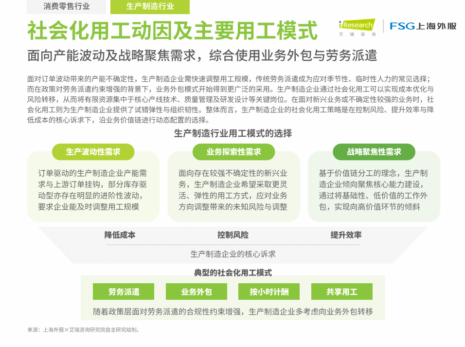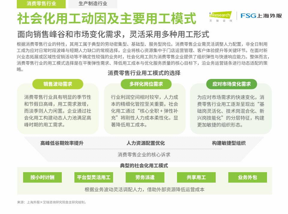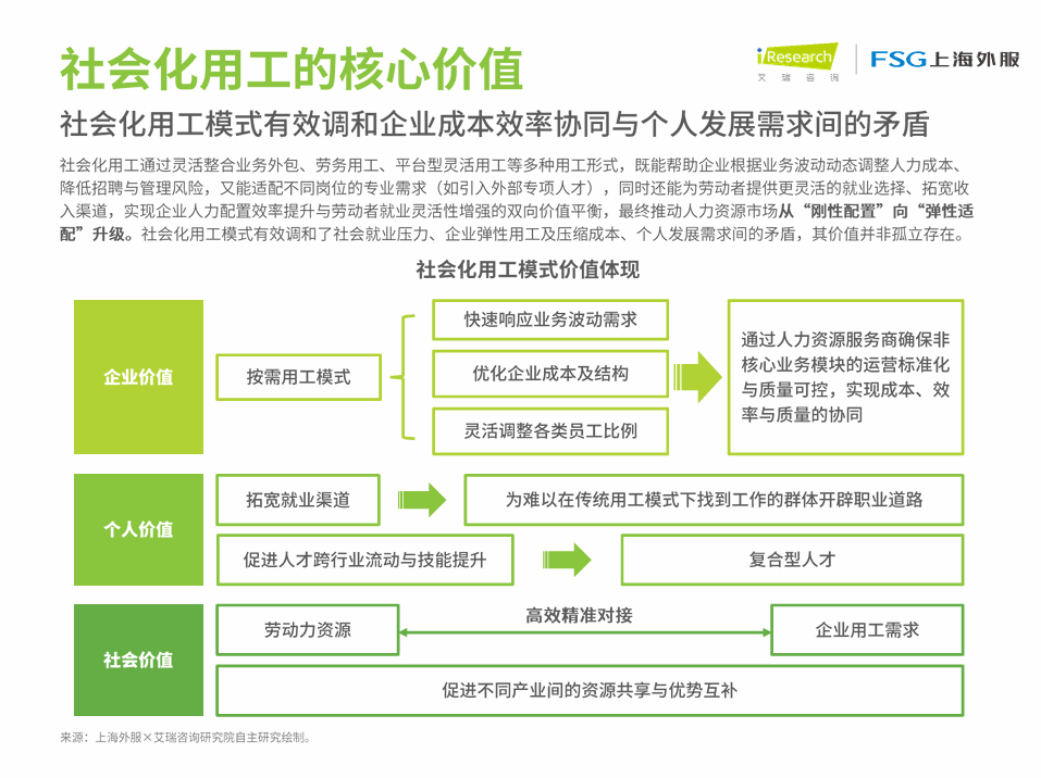 11月9日上午,上海外服在第八届中国国际进口博览会FSG展台重磅发布《中国企业社会化用工趋势分析报告》。本次报告由上海外服人力资源研究院与上海外服业务外包事业部联合艾瑞咨询(iResearch)共同制作,通过对环境因素、政策指引、市场洞察、行业应用等多个维度的深入研究分析,旨在厘清社会化用工的内涵与外延,为企业人力资源管理创新转型与新质发展提供有价值的参考信息。