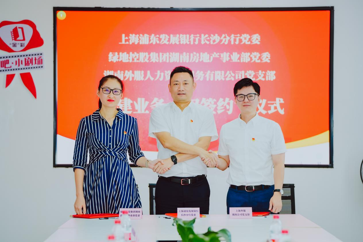 7月26日上午,外服湖南公司、浦发银行长沙分行、绿地控股集团湖南房地产事业部、湖南省上海商会联合开展党建主题活动。