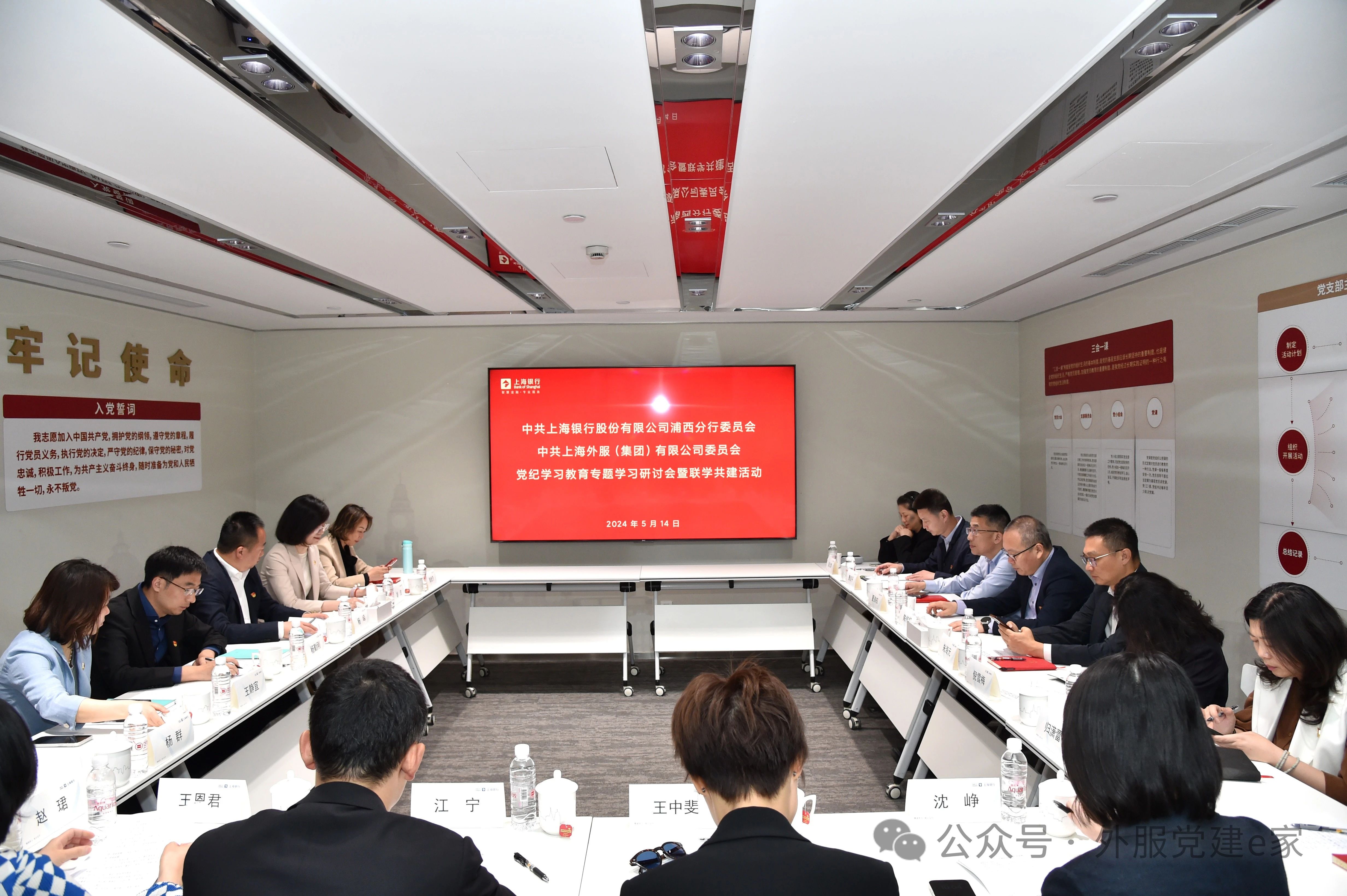 5月14日上午,上海外服党委与上海银行浦西分行党委开展党纪学习教育专题学习研讨会暨联学共建活动,共同前往黄浦区廉政教育中心、外滩历史纪念馆参观学习并进行专题研讨,这也是双方党建+业务“双签约”后又一次加强学习交流和促进融合发展的有益互动。上海外服党委书记、董事长、总裁陈伟权,党委副书记、常务副总裁朱海元,党委副书记、工会主席夏海权,上海银行浦西分行党委书记、行长杨嵘,党委委员、副行长胡佶,副行长杨勤刚等双方领导班子成员及相关部门负责人参加。