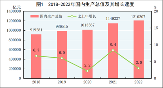 根据《中华人民共和国2022年国民经济和社会发展统计公报》显示,全年国内生产总值比上年增长3.0%,对比2021年,这一增速明显有所放缓。一方面,疫情三年以来,中国整体经济面临着一定的挑战;另一方面,中等收入陷阱、产业升级、中美国际关系等问题也给经济的发展带来了多重压力。