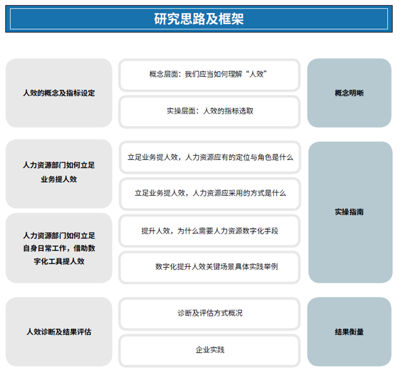 虽然人效提升是一个需要在企业整体层面予以关注的话题,但介于本研究的读者群体基本以人力资源从业者为主,本次调研我们从人力资源管理的视角出发,探讨人效的概念与提升方式,试图帮助HR梳理出一条清晰的人效管理脉络,从而更好地为企业服务,实现人力资本的增值。