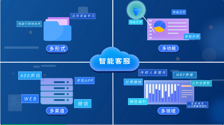 智能客服系统打通了员工职场生态场景,从入职期间的待办事宜,到在职期间的社保公积金等手续办理,直至离职后的人事档案转移及注意事项,都通过“智能+人工”的方式进行7X24解答,为员工提供了全面高效的一站式服务,放心又贴心。其中智能外呼服务,替代人工完成信息通知、业务催办、材料收缴等电话呼出工作,服务效率提升了近十倍。