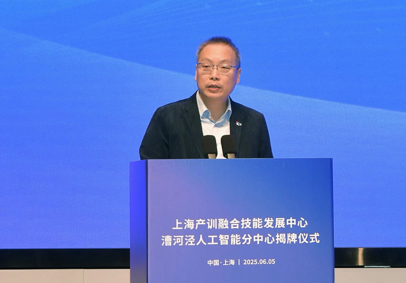 6月5日,上海产训融合技能发展中心漕河泾人工智能分中心揭牌仪式在漕河泾会议中心举行,上海市人力资源和社会保障局副局长谭友林、徐汇区副区长王志华出席活动并为漕河泾人工智能分中心揭牌。