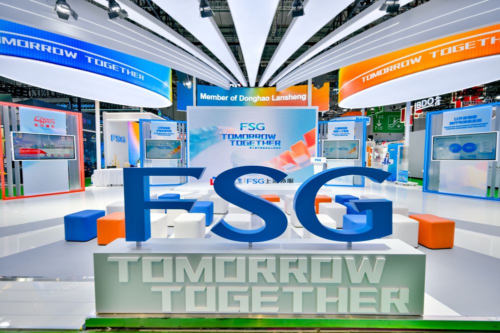 11月5日至10日,第八届中国国际进口博览会在上海国家会展中心成功举办。上海外服FSG展台以"TOMORROW TOGETHER"为主题,聚焦全球化服务解决方案、全周期人才服务体系、AI智能化应用及可持续发展四大板块,系统呈现了上海外服在支持全球业务拓展与人才发展方面的综合服务能力。