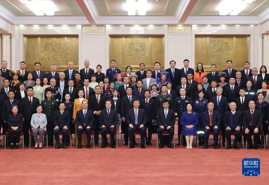 11月5日,党和国家领导人习近平、王沪宁等在北京人民大会堂会见第八届全国道德模范及提名奖获得者。新华社记者 申宏 摄