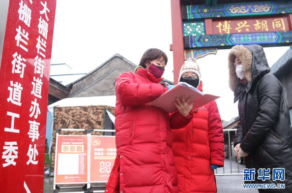 北京市西城区大栅栏街道石头社区社工在博兴胡同登记点上值守(2月14日摄)。新华社发(崔耀平 摄)