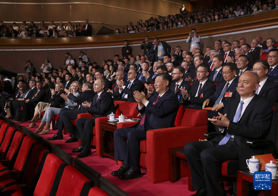 两国元首共同欣赏由中俄两国艺术家联袂呈现的精彩文艺演出。